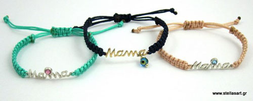Βραχιολάκια «mama» και «μαμά» από ΑΣΗΜΙ 925 με χρωματιστό στρας και πλέξη μακραμε