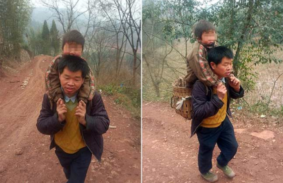 Κάθε πρωί ο Yu Xukang, ένας πατέρας από το Yibin (κάπου στην επαρχία της Κίνας), κουβαλάει το γιο του στην πλάτη, μέσα σε ένα χειροποίητο καλάθι. Και αυτό το κάνει προκειμένου να τον μεταφέρει στο σχολείο του γιατί δεν υπάρχει άλλος τρόπος. Στη συνέχεια επιστρέφει για να πάει στη δουλειά του και το απόγευμα ξαναπηγαίνει στο σχολείο για τον φέρει πίσω στο σπίτι. Με αυτόν τον τρόπο περπατάει σχεδόν 15 χιλιόμετρα τη μέρα.